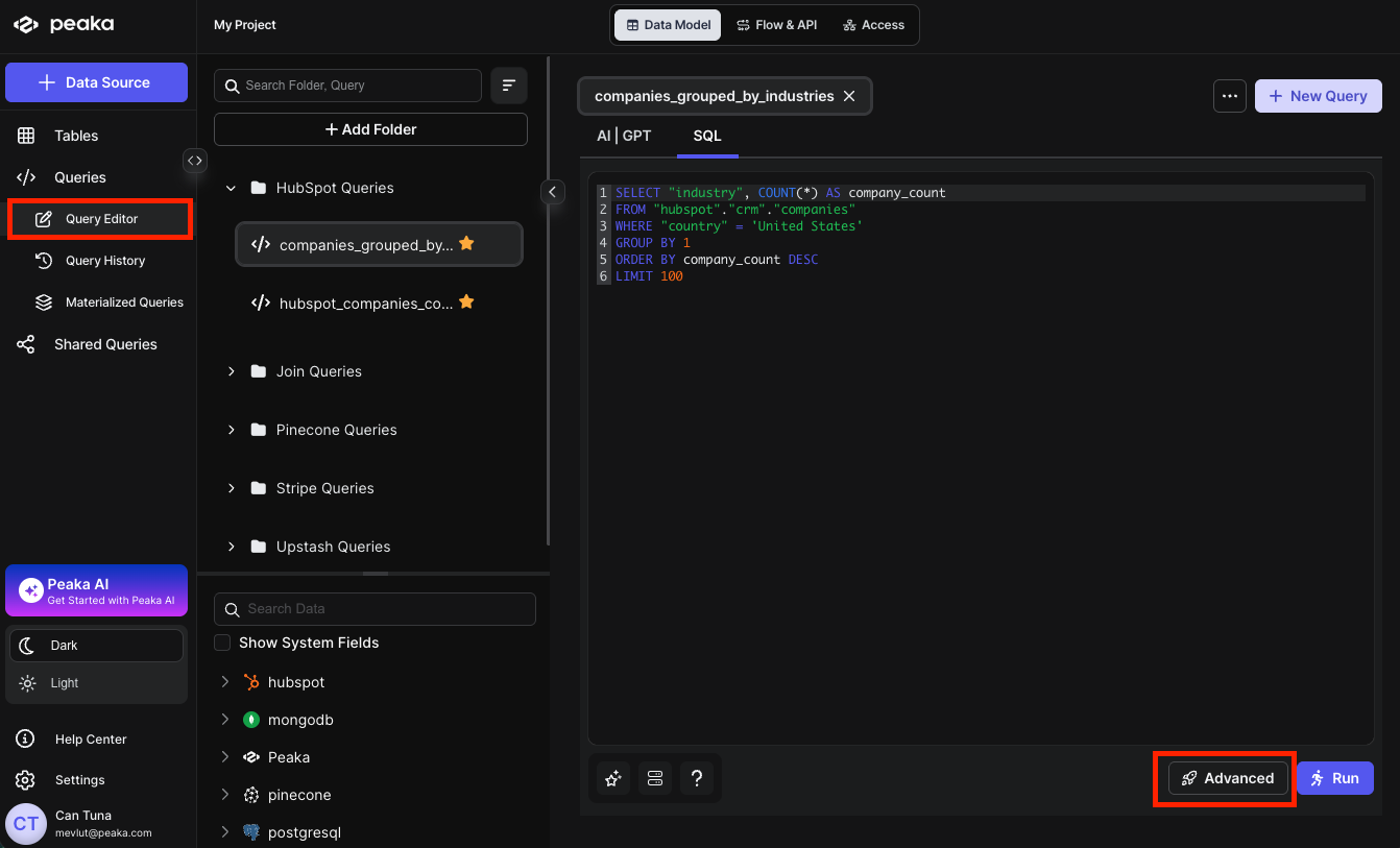 - You will be redirected to the Query Editor where your materialized query will open. Make your desired modifications to the query and run it to see the updated results.